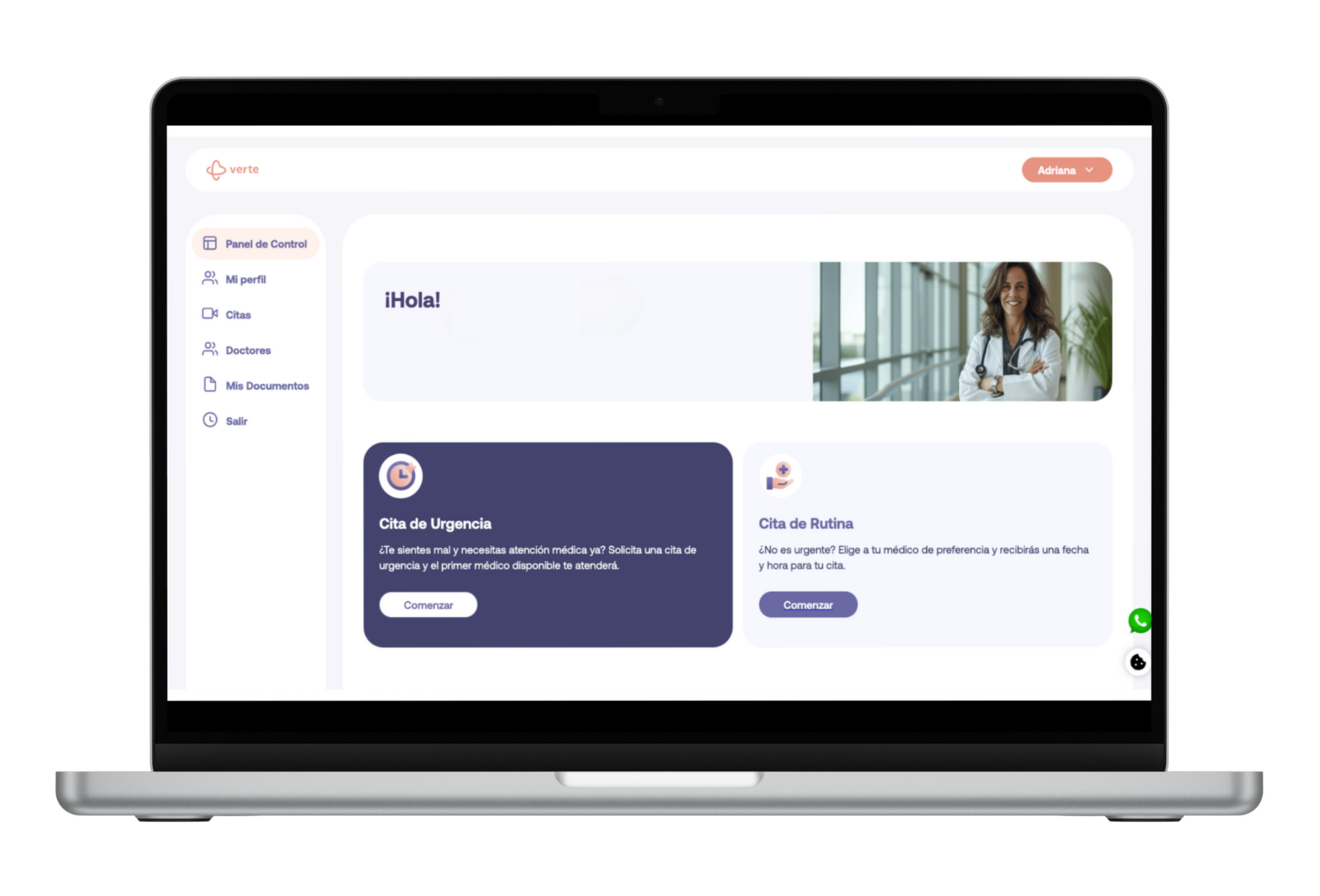 Con VERTE, puedes escoger el tipo de cita que mejor se ajuste a tu necesidad: urgencia o de rutina.